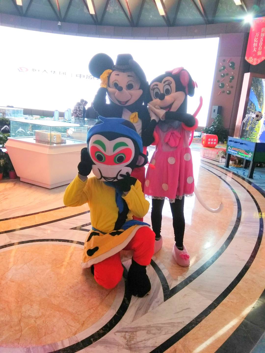 在售楼处兼职,我穿的米妮,11月份的天还是很热,早上9点到晚上6点,90块钱。
