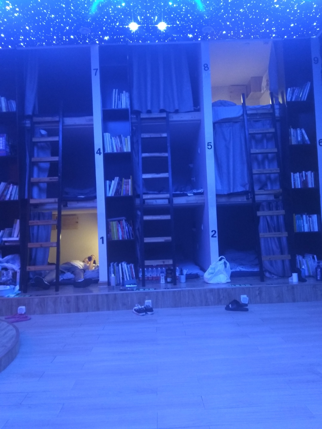 图一是青年旅社的树洞房,一晚50元左右,我睡过一次,因为那次没抢到更便宜的地台(图二的),地台只要28元,但是只有到了晚上23点老板铺上被子,才能上去睡。