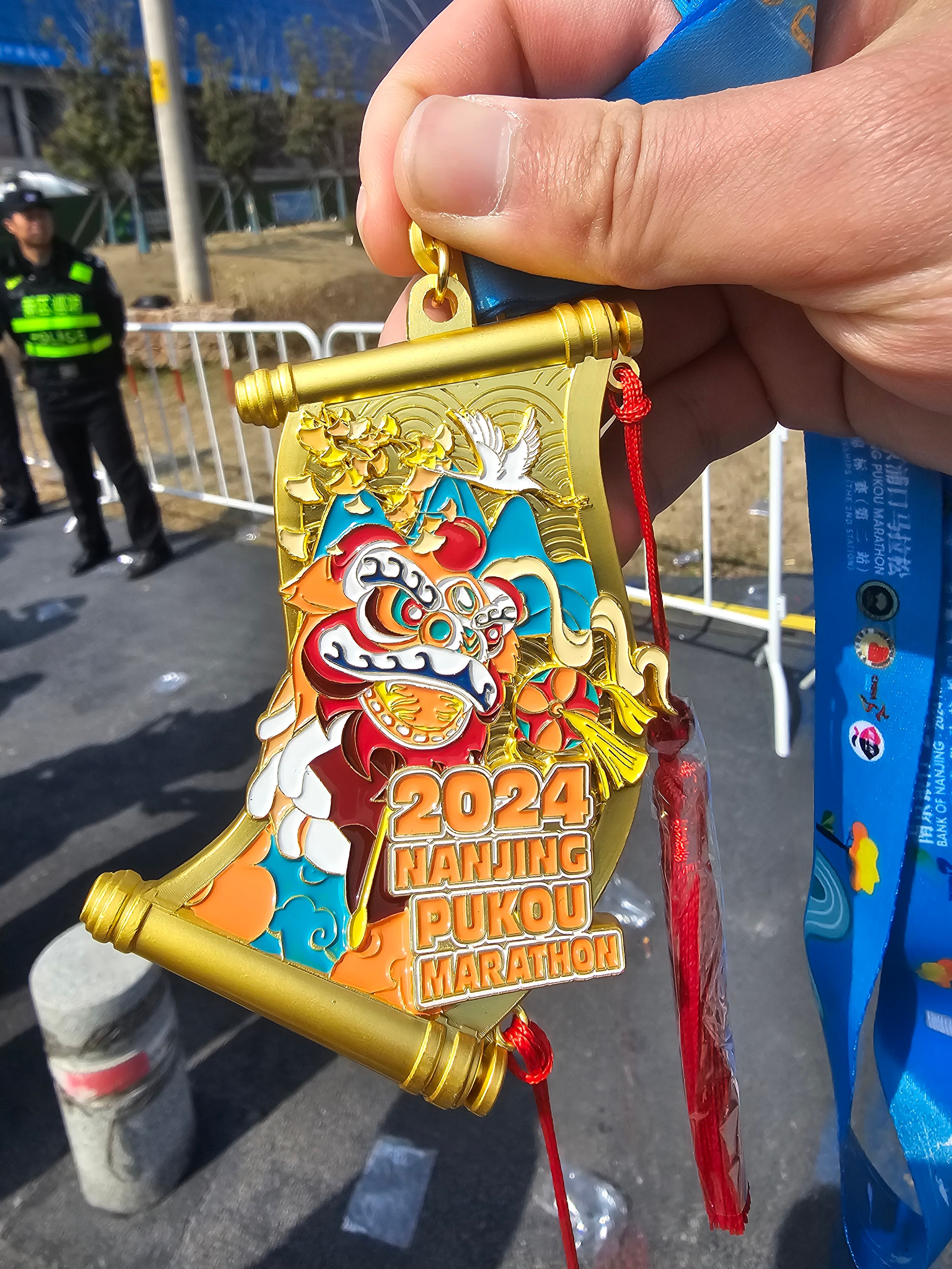 图五是浦口的半程马拉松,因为手表过年时坏掉了,修了一个月还没修好,结果我左手拿手机,右手拿骑行码表,哈哈哈哈