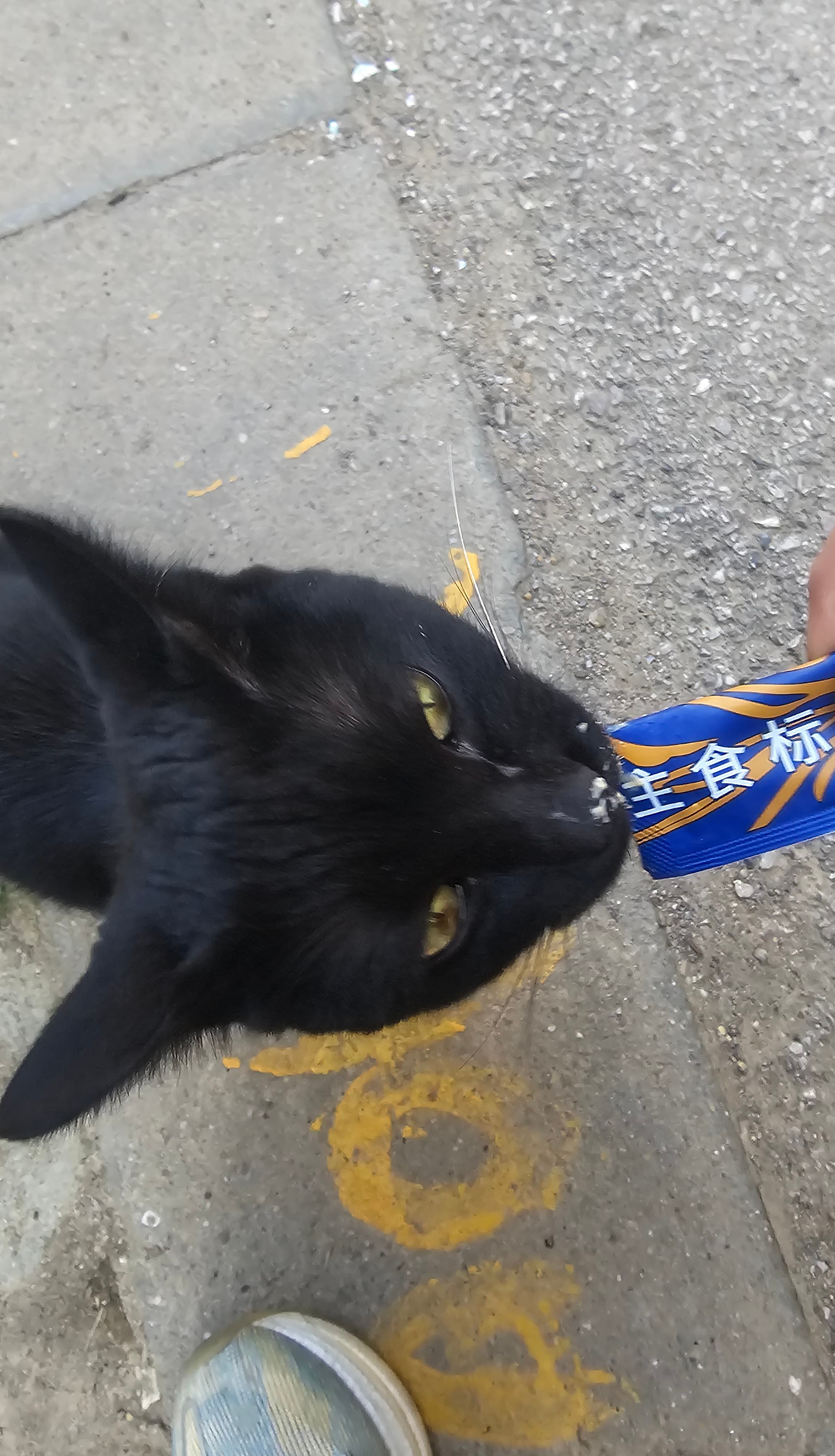 图六也是小区的猫,太亲人了,跟饿死鬼一样吃猫条